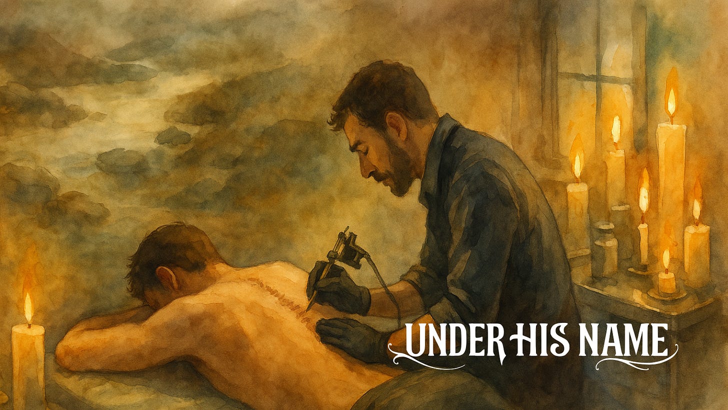 Under His Name is a gothic love story told through fifty-two sessions of ink and resurrection. It begins with grief and ends with transfiguration, charting the slow, luminous descent from body to myth. The marks change. The room changes. The world itself begins to listen.
